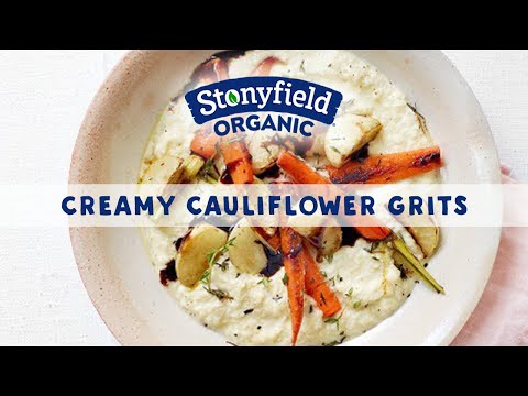 Creamy Cauliflower Grits - Danny Seo - Vegan Cauliflower Grits - We are just loving all of the new ideas for cooking with Cauliflower. Naturally Danny Seo's Creamy Cauliflower Grits with Stonyfield Yogurt is one of our favorites!